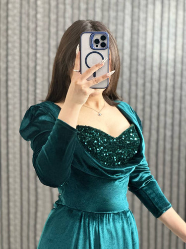 لباس مجلسی مدل «یغما» — فلوک مخمل با آستر، قد 160 سانت، زیپ پشت