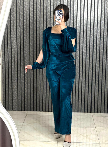 اورال مجلسی مدل «نارین» — مخمل بهاره با کمربند، زیپ پشت