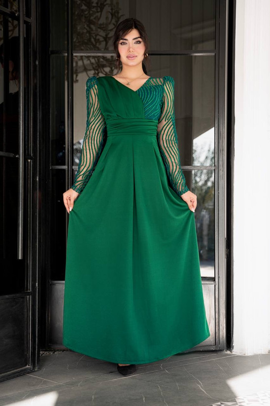لباس مجلسی «جانان» تلفیقی از ظرافت و درخشندگی است؛ بدنه اصلی از کرپ با افت خوب و فرمدهی مناسب دوخته شده و قسمتهای برجسته یا جزییات کار شده از پارچه فلوک شاین که جلوهای ملایم و براق دارد تشکیل شده است. این ترکیب، ظاهری شیک و مدرن با نرمی و راحتی بالا فراهم میکند.