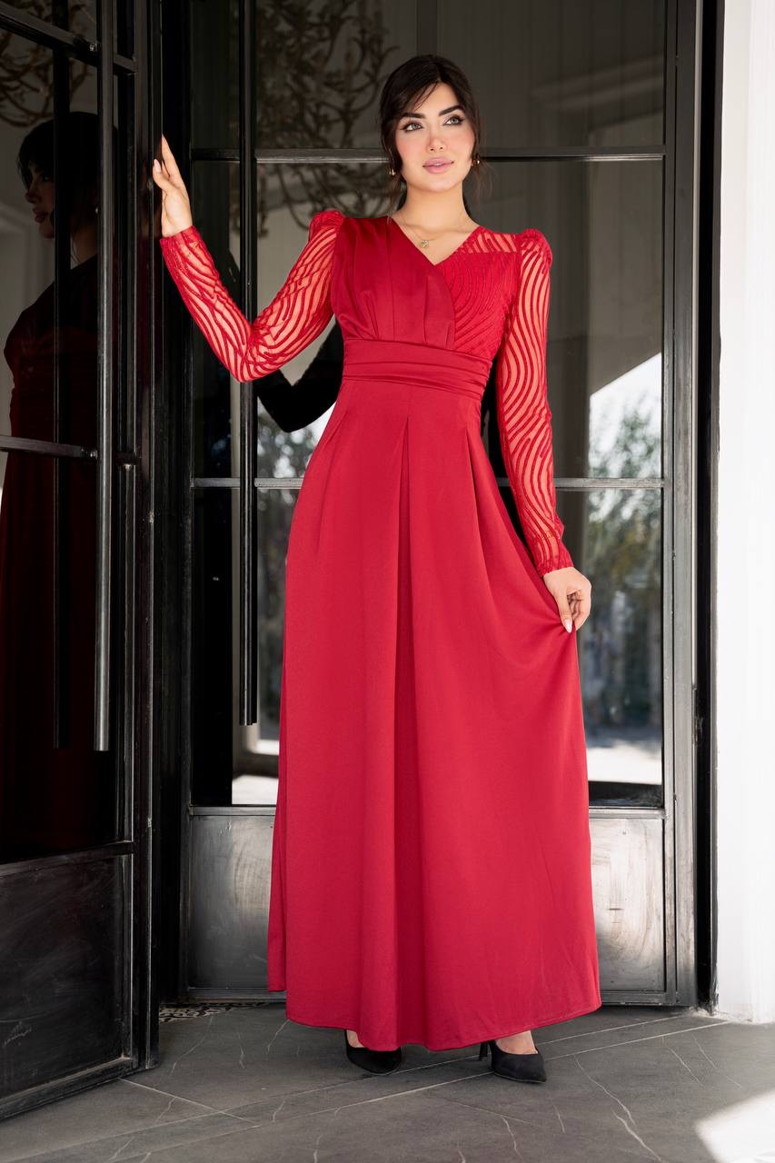 - فرم کلی: ماکسی یا midi با کمر اندکی فیت و دامنی که حس پرواز و حرکت نرم ایجاد میکند (A‑line ملایم یا فون سبک).