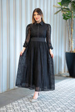 لباس مجلسی پوشیده مشکی مدل «شهرزاد» — پارچه گیپور با آستر