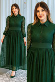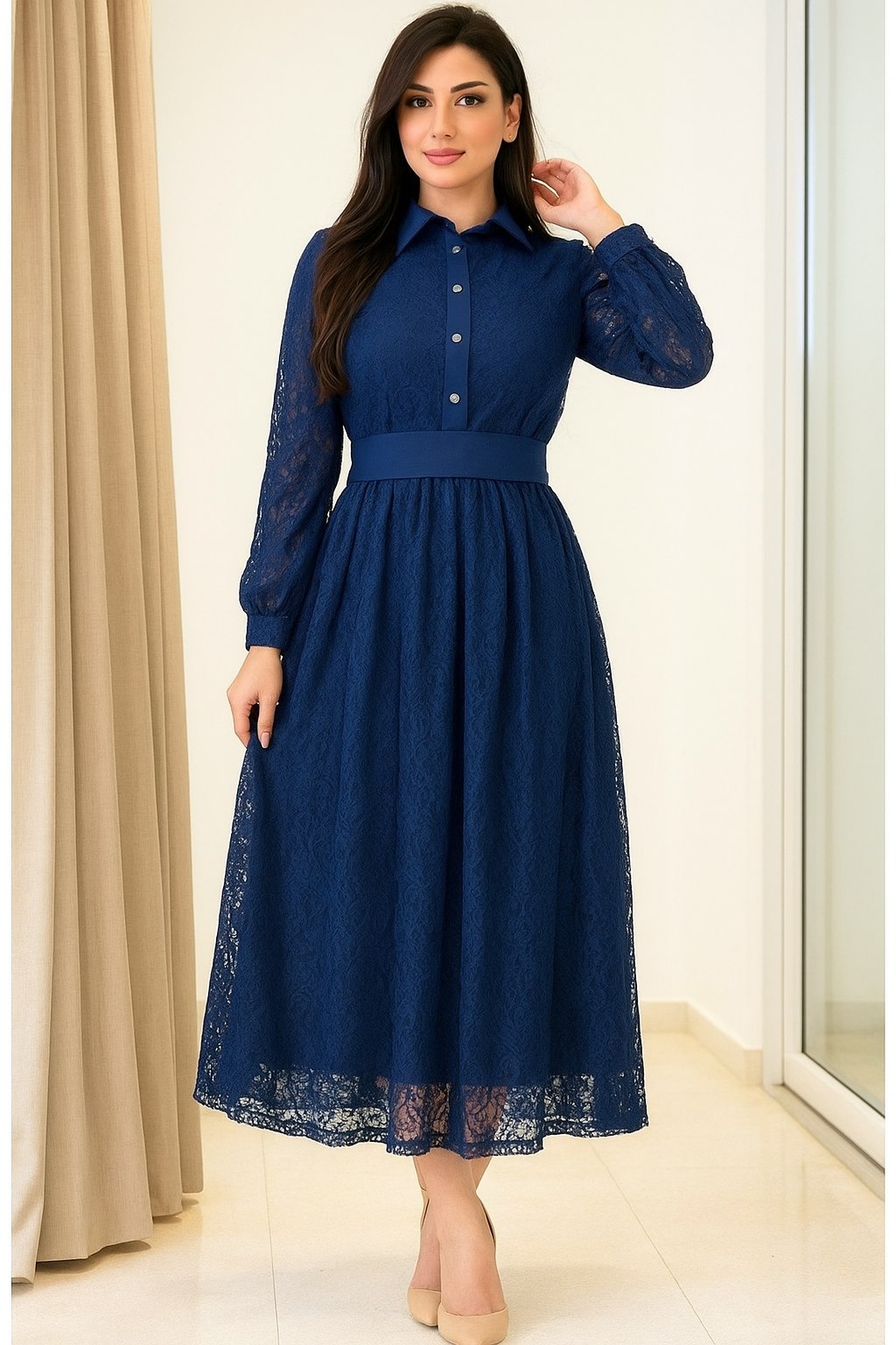 لباسی مجلسی و پوشیده به رنگ مشکی، از پارچه گیپور با آستر داخلی، مناسب مراسم رسمی و مجالس که ترکیبی از ظرافت و راحتی ارائه میدهد.