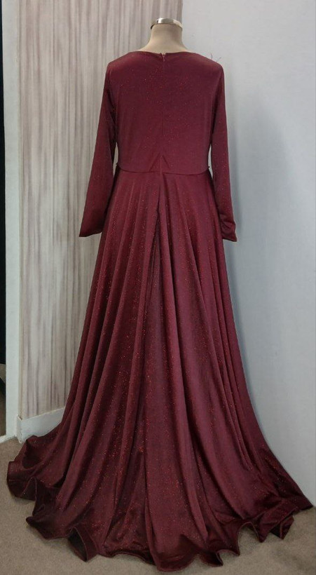 لباسی مجلسی و زنانه از جنس حریر شنی با بافت لطیف و اکلیلدار برای جلوه درخشان در مهمانیها و مراسم رسمی. طراحی شیک و مناسب مجالس شب و جشنها. قد کار 155 سانتیمتر.